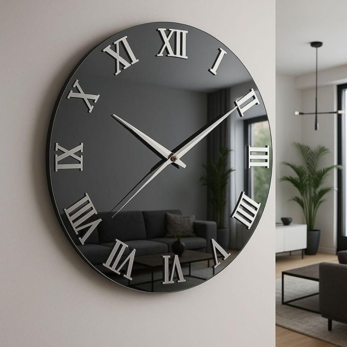 Roman Mirror Wall Clock – Black Acrylic
