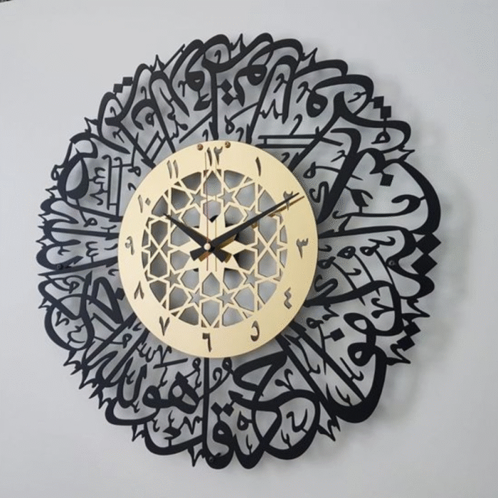 Surah Ikhlas Calligraphy Clock Golden Silver