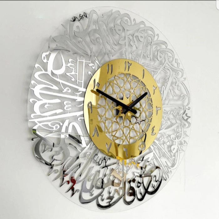 Be the first to review “Surah Ikhlas Calligraphy Clock Golden Silver” Cancel reply