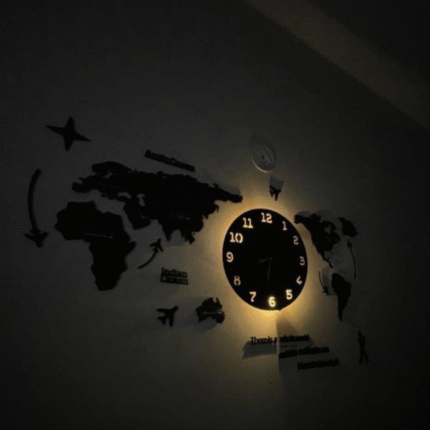 World Map Wall Clock with Neon Light (Large)
